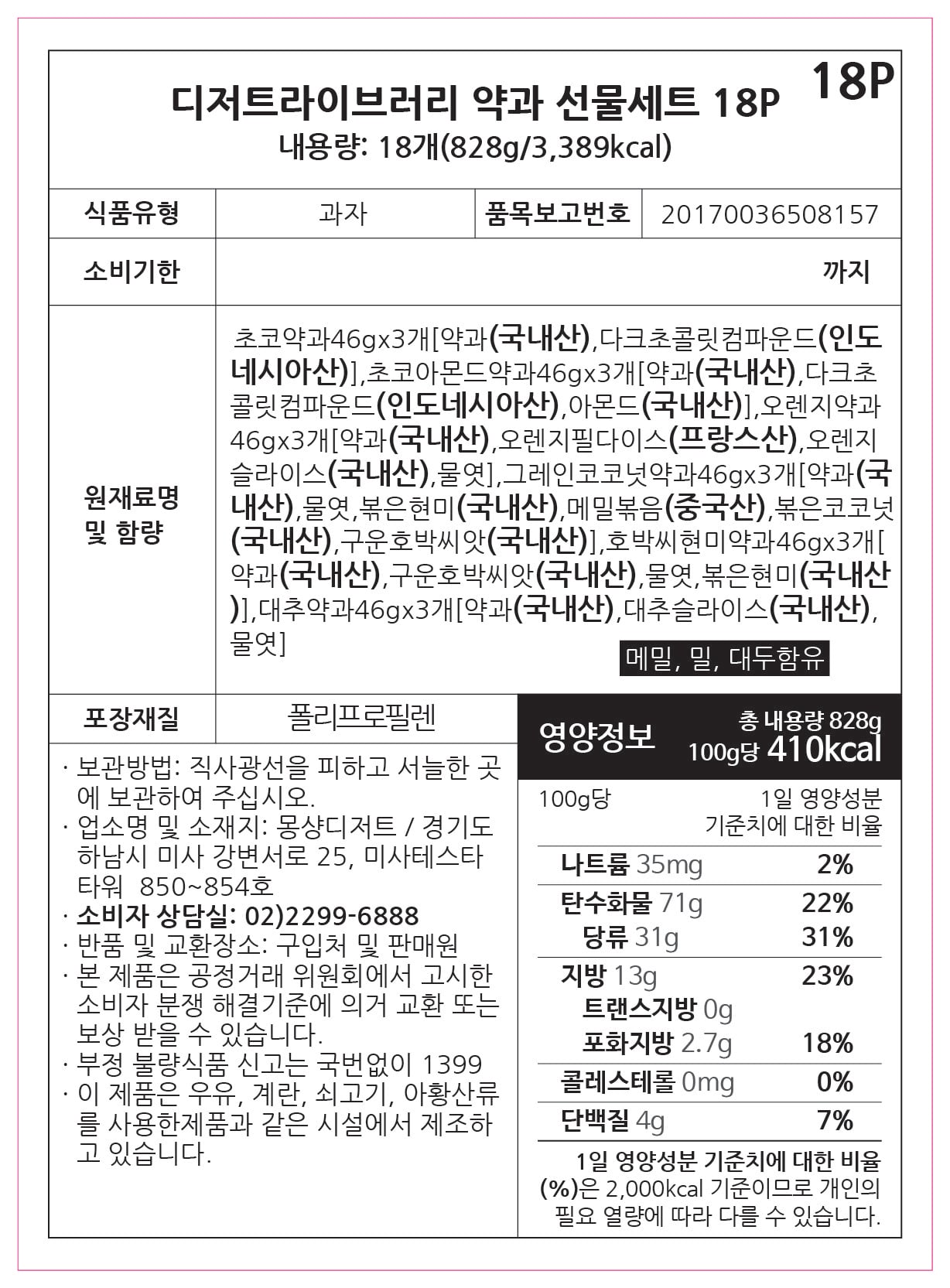Monsyang82 Dessert Library Traditional Yakgwa Gift Set (18 Pieces) + Shopping Bag, 828g, 1 Set