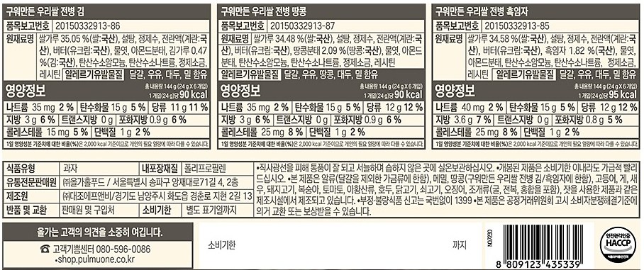 ORGA Baked Korean Rice Crackers Gift Set (Seaweed 6pcs + Black Sesame 6pcs + Peanut 6pcs), 432g, Set of 2
